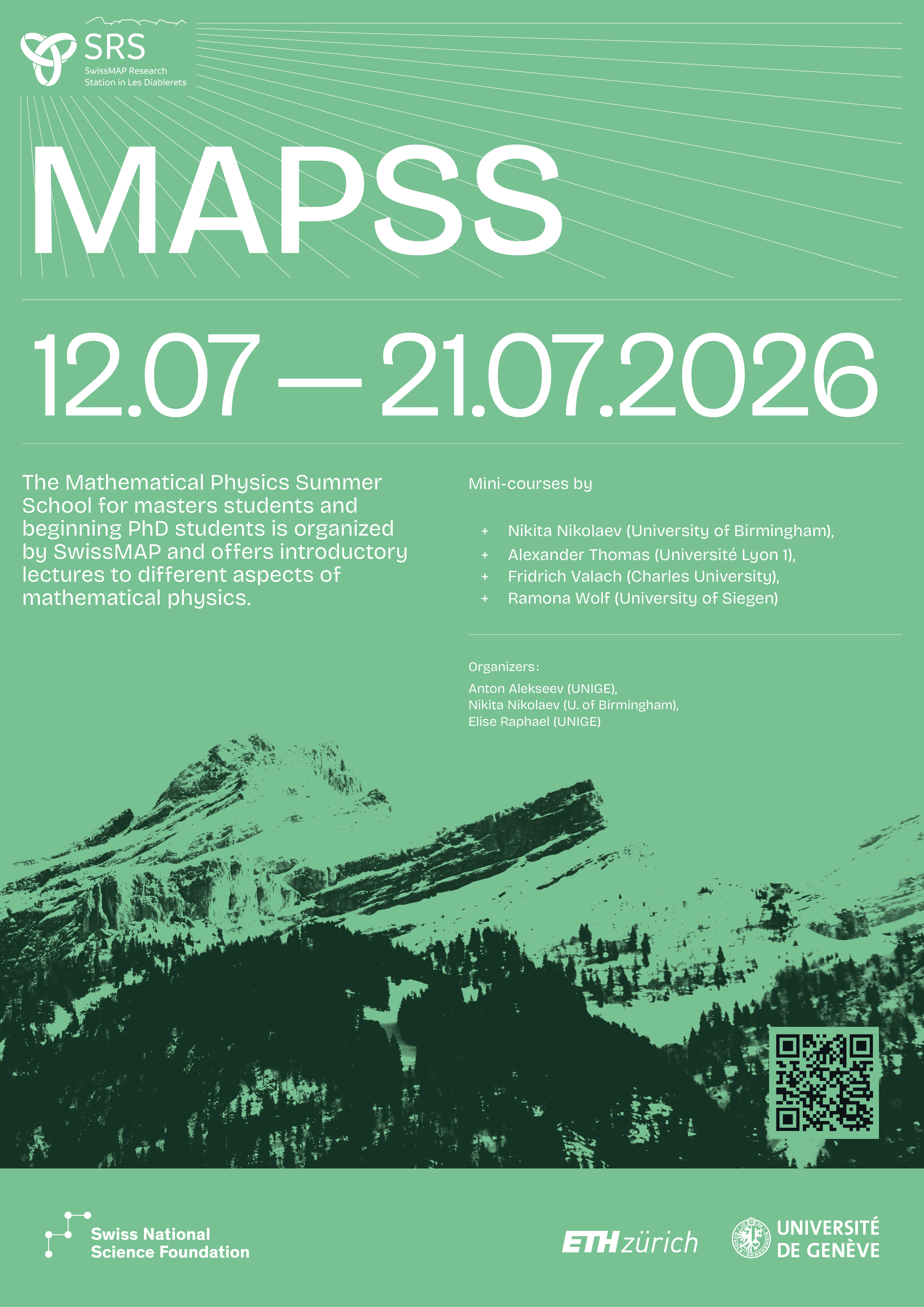 The Mathematical Physics Summer School for masters students is organized by SwissMAP and offers introductory lectures to different aspects of mathematical physics.